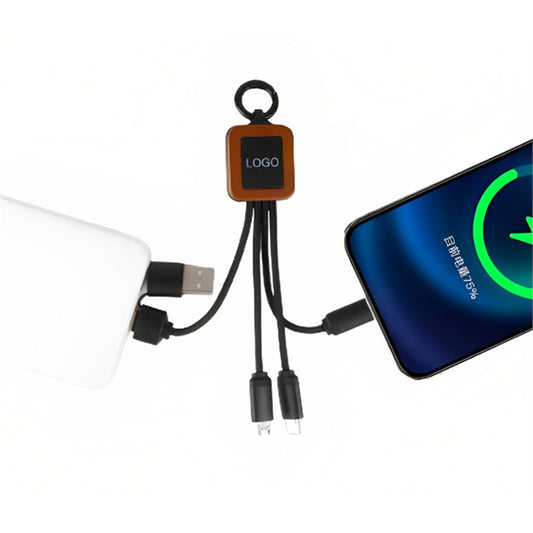4 in 1 Logo Light-up Braided & Bamboo Cable with Keychain