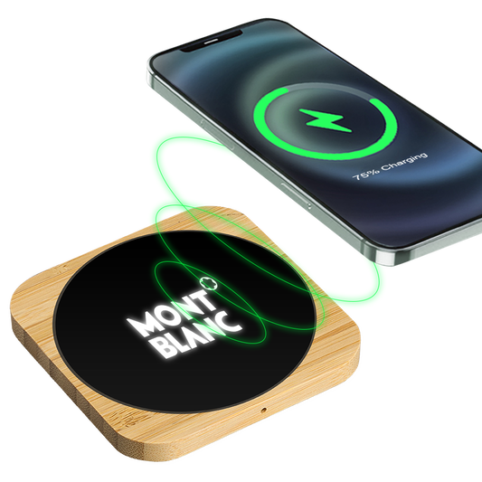 Squre Bamboo 15W Wireless Charger with Light Up Logo