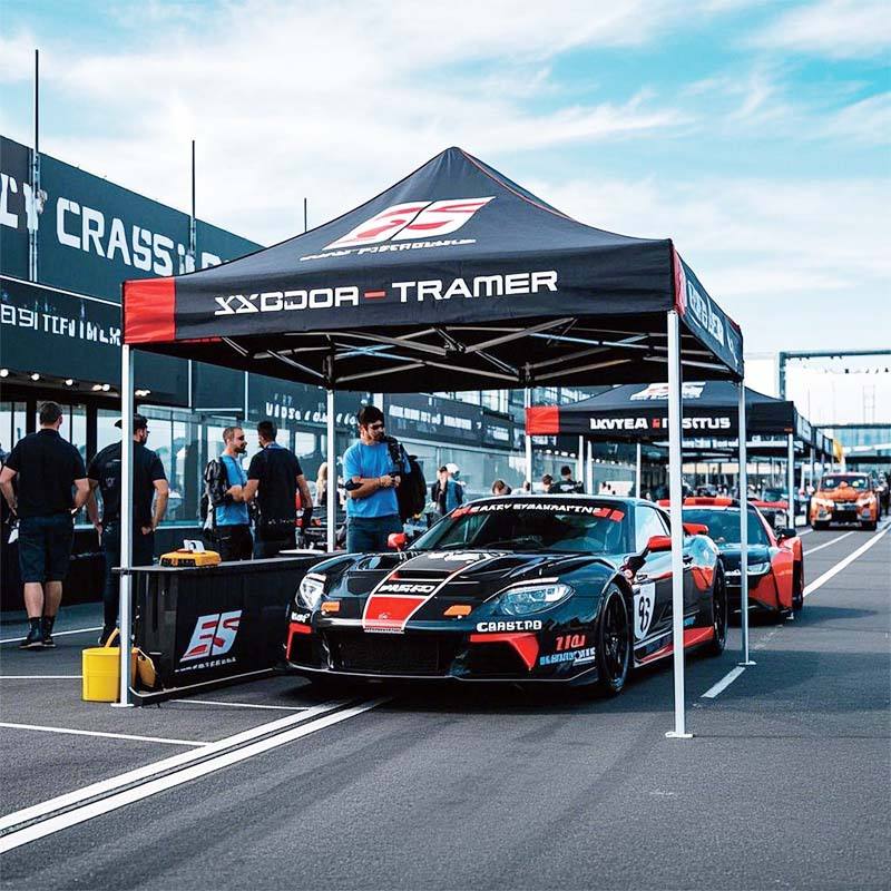 This popular tent strikes a perfect balance between cost effectiveness and portability. Tent is 10' x 10' when set up. Canopy is constructed of durable, weather-resistant 600 denier polyester. Frame features ABS nylon joints.Legs feature plastic push buttons for pinch-free height adjustment.Easily collapses to fit inside the included carry case with wheels.Also can be secured to the ground with the included ground nail & rope.