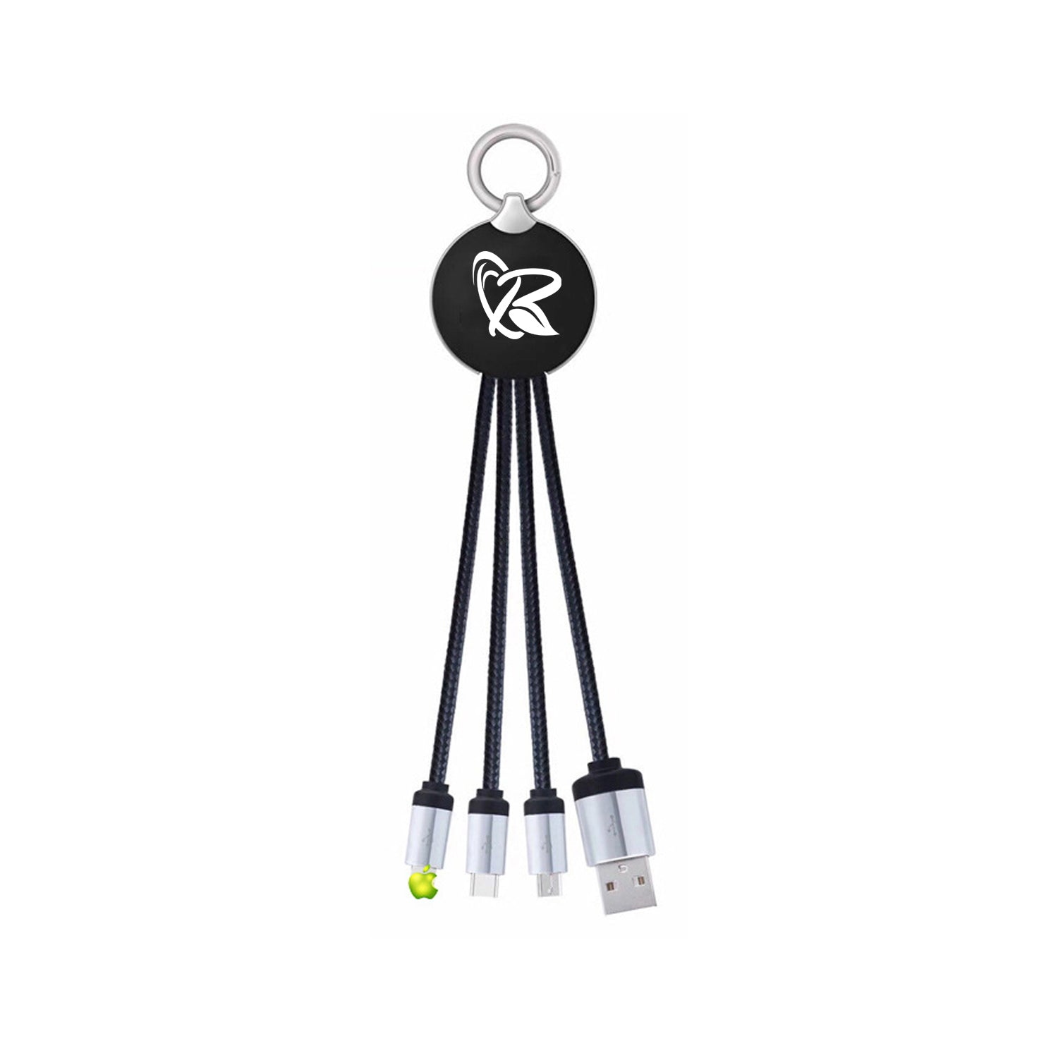 Illuminate your brand with our premium 3-in-1 charging cable, featuring an LED-lit logo perfect for promotions and events. Equipped with Micro-USB, 8-Pin, and Type-C connectors, it meets all your device charging needs. Ideal as a promotional gift or for corporate events—light up your logo and capture everyone’s attention.Light color: white.