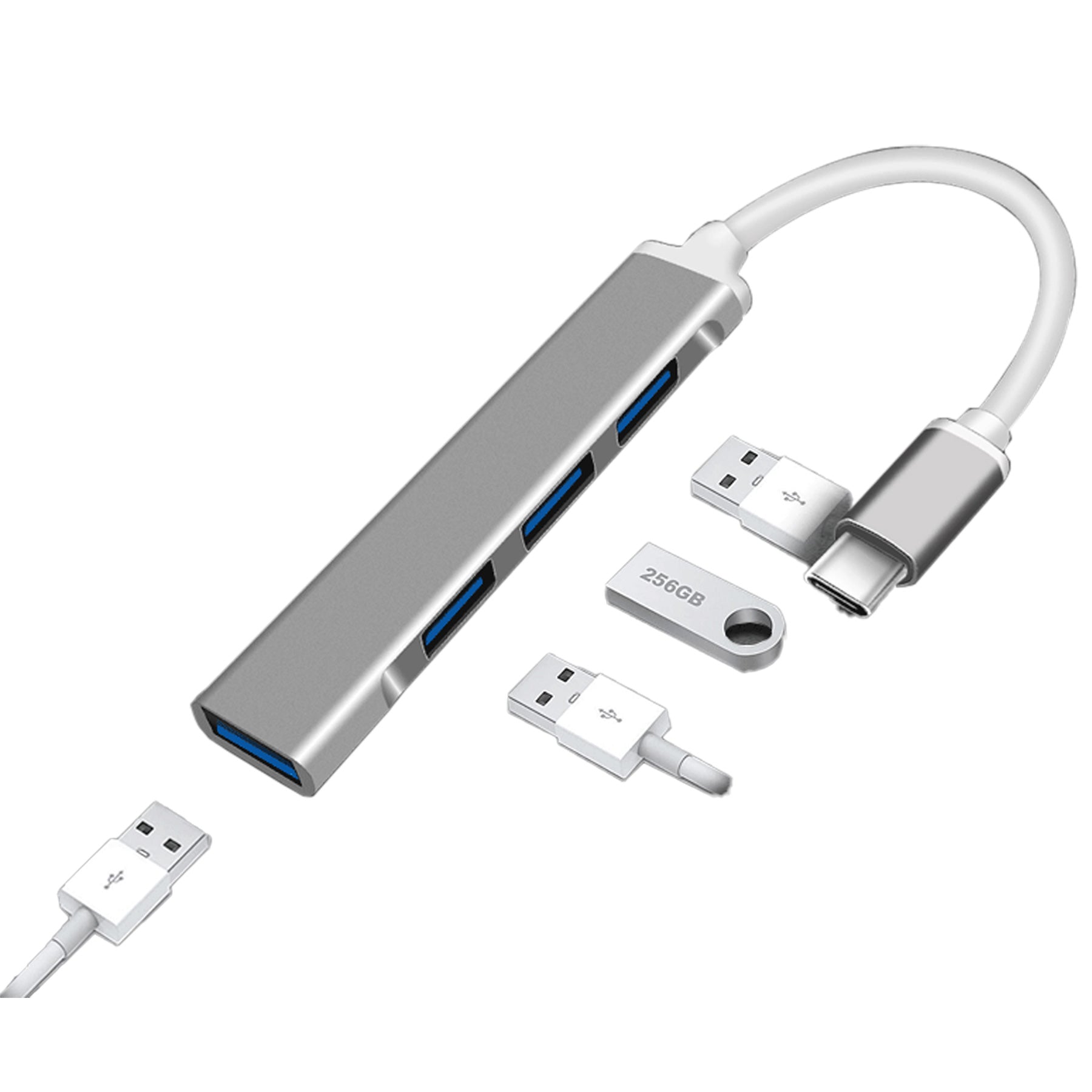 Aluminum body.Type-c USB2.0*3 USB3.0*1 Suitable for type-c port computer and mobile phone data transmission expansion, such as: mouse, keyboard connection, peripheral device connection, downlink to the mobile phone through the USB portMulti-port splitting such as charging. Meet the multi-port expansion requirements of the device. Performance characteristics: 1.USB3.0*1 theoretical speed 5Gbsp, standard USB3.0 2.USB2.0*3 theoretical speed 480Mbps, standard USB2.0